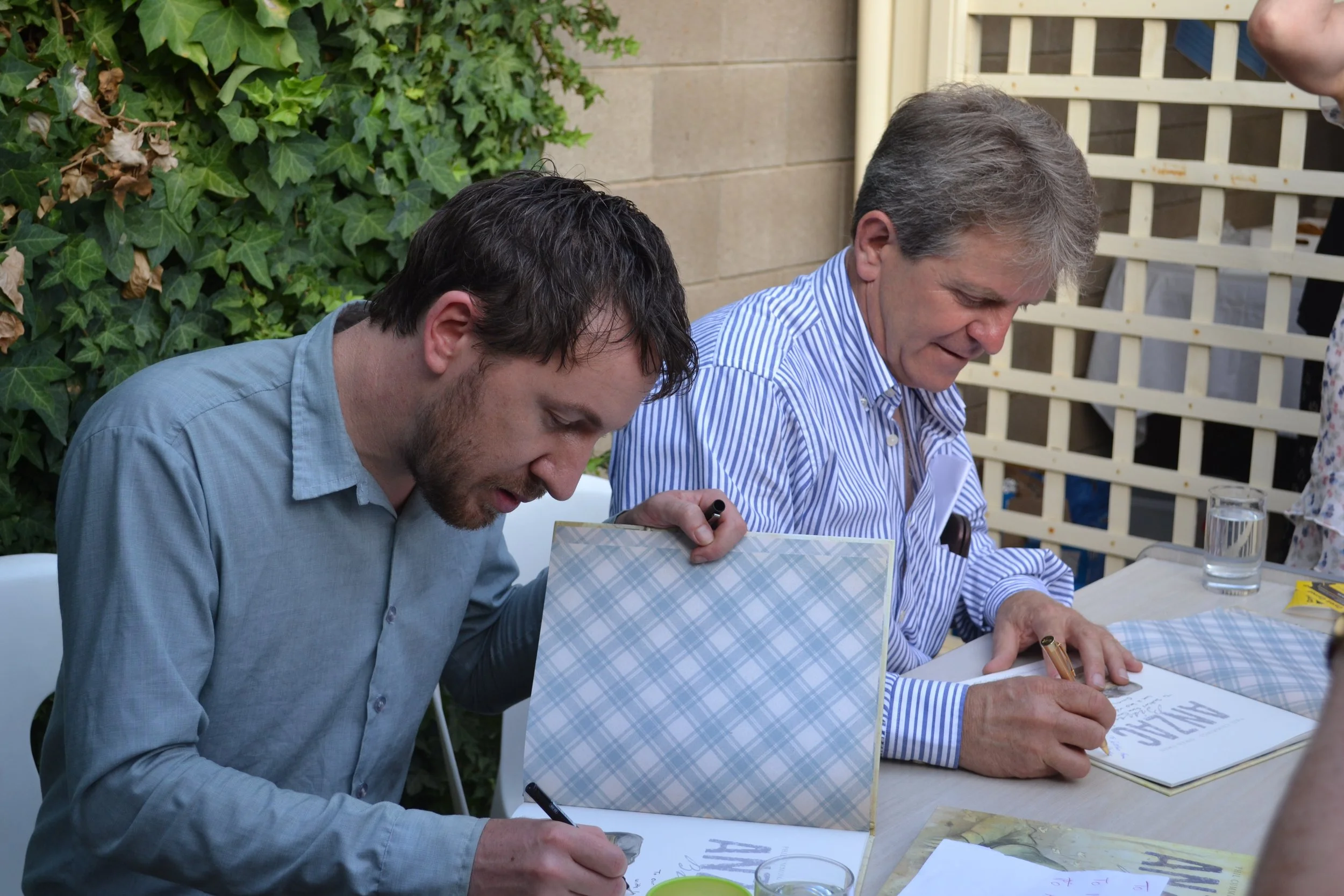 Phil and Phil Lesnie in Canberra when Feathers was shortlisted for the Prime Minister’s Literary Awards